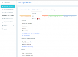 Note: Sub Functions with processes listed in them cannot be deleted. Refer to the [Deleting Processes] or [Moving Processes] section for instructions on how to remove processes, so that you can delete the Sub Function.